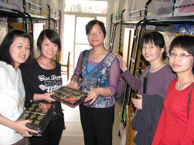 老师们带去的不仅仅是端午礼物——绿豆糕,更重的是老师对员工的关心和爱心。每到一个寝室,同学们都热情地招待前来探望的老师,并向老师介绍寝室的各种情况。无论在学习上还是在生活上,老师们都很乐意和同学们交谈,了解同学们的课余生活和思想。同学们向老师诉说学习和生活中的各种困惑和感受,老师们都耐心地倾听,并引导员工解决这些问题。老师们还帮助员工叠被子、摆鞋子、整理书架,并对员工的寝室进行了指导,忙得不亦乐乎。安全也是老师极其注意的一个问题,每个寝室,老师们都察看是否存在安全隐患,并为同学们讲解安全知识�E�E�E
