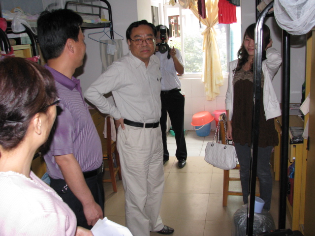 2010年6月10日为公司 “爱生日”,下午,商贸公司党总支组织全体老师深入到员工寝室,了解员工学习、生活情况。公司副经理王京章、团委书记叶平浩也一同前往寝室,探望商贸公司员工。