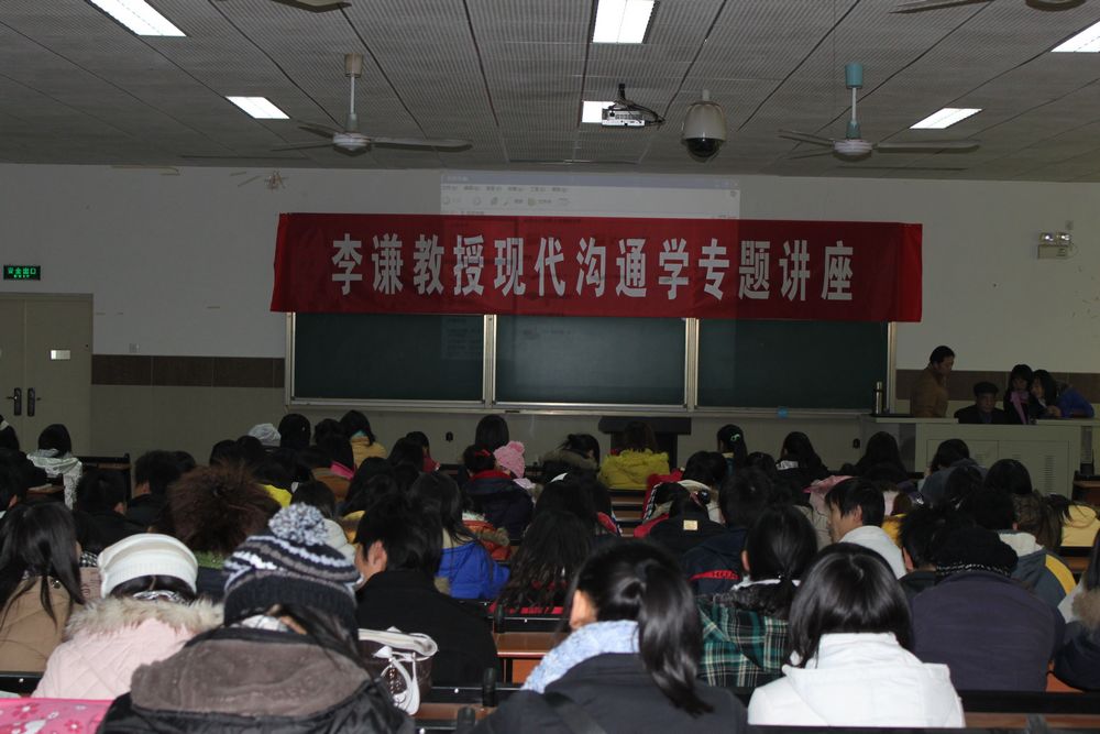 3:00,从全院员工中选派的员工干部共300余人齐聚艺术系阶梯教室,聆听李谦先生关于“掌握沟通 主宰未来”的专题讲座。