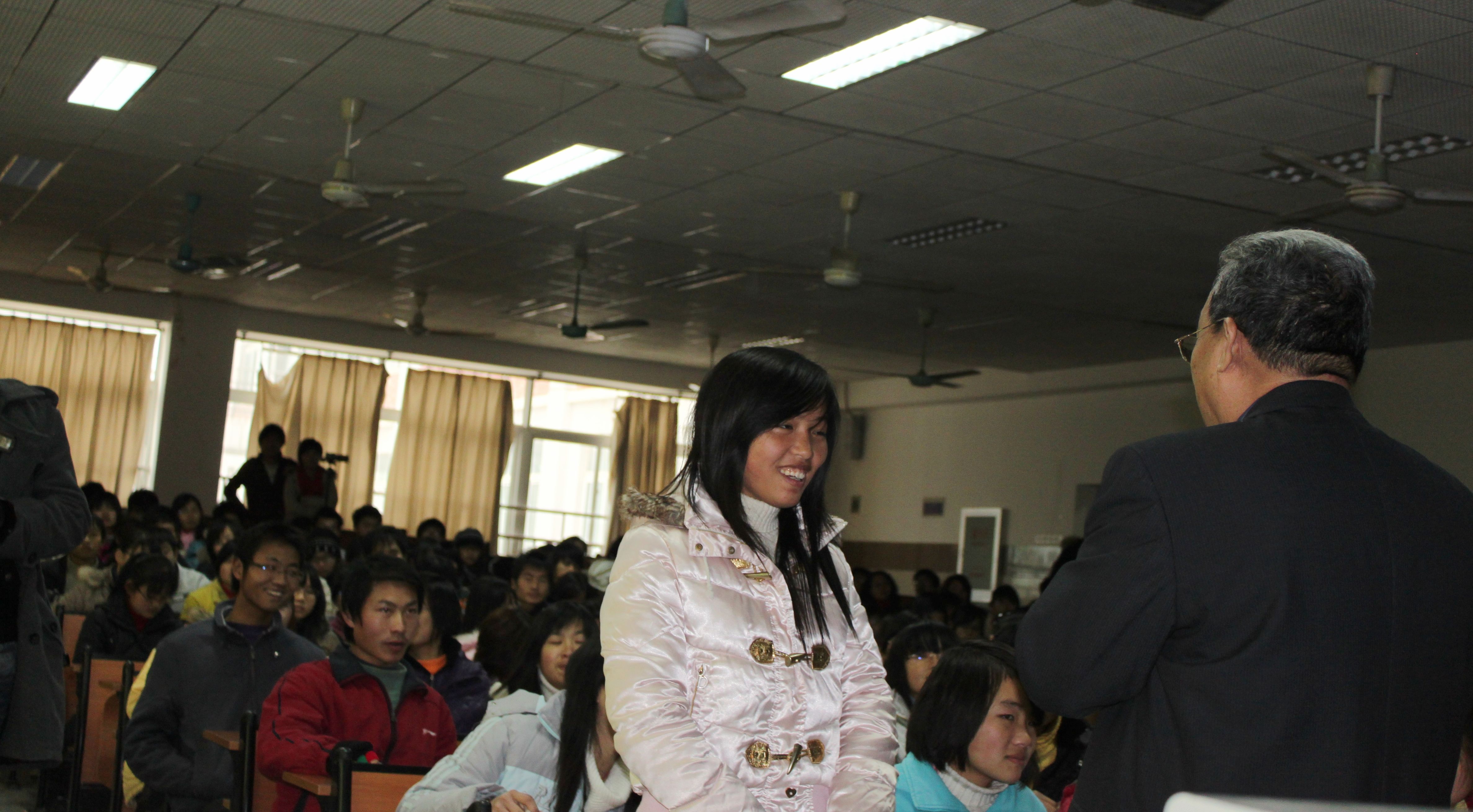 李谦先生告诉同学们,人生的辉煌与暗淡,成功与失败,轰轰烈烈与平平淡淡……,无不与个体本身的沟通行为紧密相关。他用生动的语言讲述了什么是沟通,什么是沟通能力以及沟通能力的三大层面;讲了什么是价值观和价值观体系,它们又是如何影响着人们的沟通行为......他激情幽默的语言和师生互动使现场气氛活跃,员工们纷纷踊跃上台发言,欢快的笑声和热烈的掌声,像寒冬腊月的一股股暖流,回荡在阶梯教室和大家的心窝里。