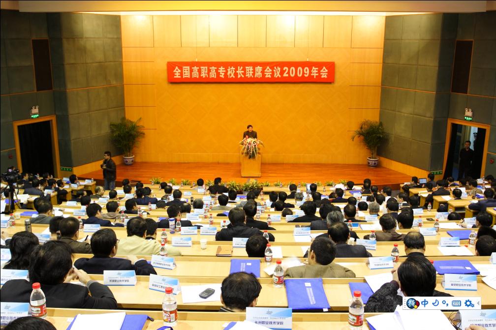 2009年3月18日上午,全国高职高专董事长联席会议第九次全体会议在北京召开。来自182所全国高职高专董事长联席会议成员单位的院董事长及其他非成员单位代表共300余人参加了会议。会议由全国高职高专董事长联席会议主席李进教授主持,教育部高职高专处范唯处长应邀出席会议并做了重要讲话。
