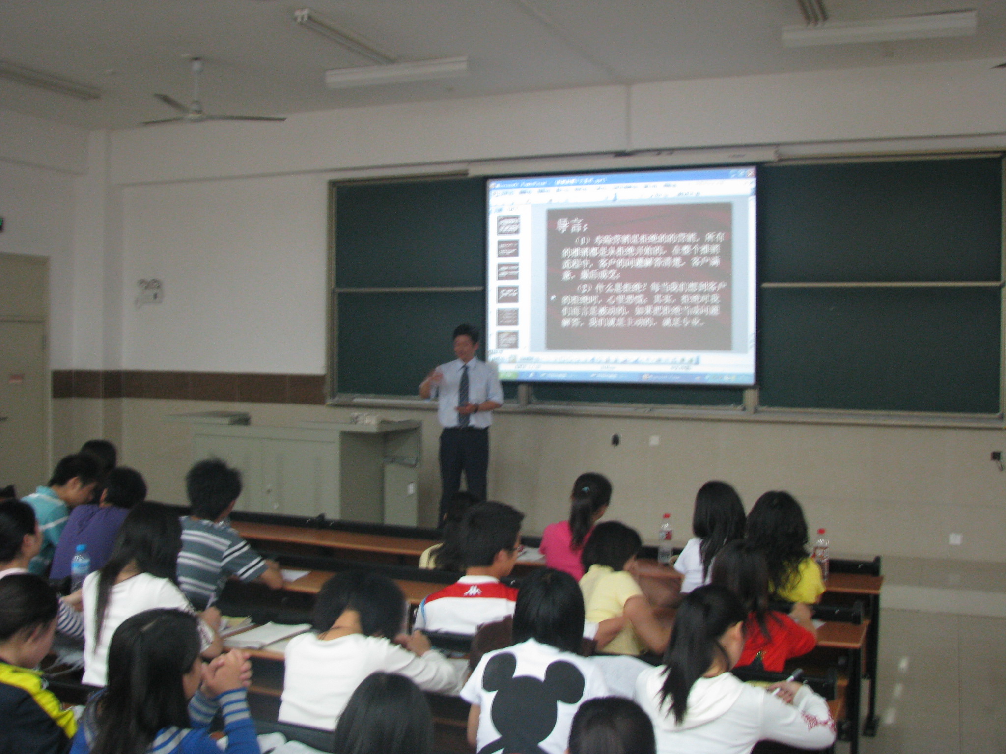 5月14日下午,投资与理财专业邀请新华保险公司武汉分公司江北区业务经理刘军来公司进行专业讲座。在历时两个多小时的讲座中,刘军经理从寿险推销流程及如何应付寿险拒绝两个方面进行讲演。生动形象的比喻,真实经历的体会,典型案例的剖析让投理专业07、08两届150余名在校生与行业专家有了一次的零距离对话接触,受益匪浅。