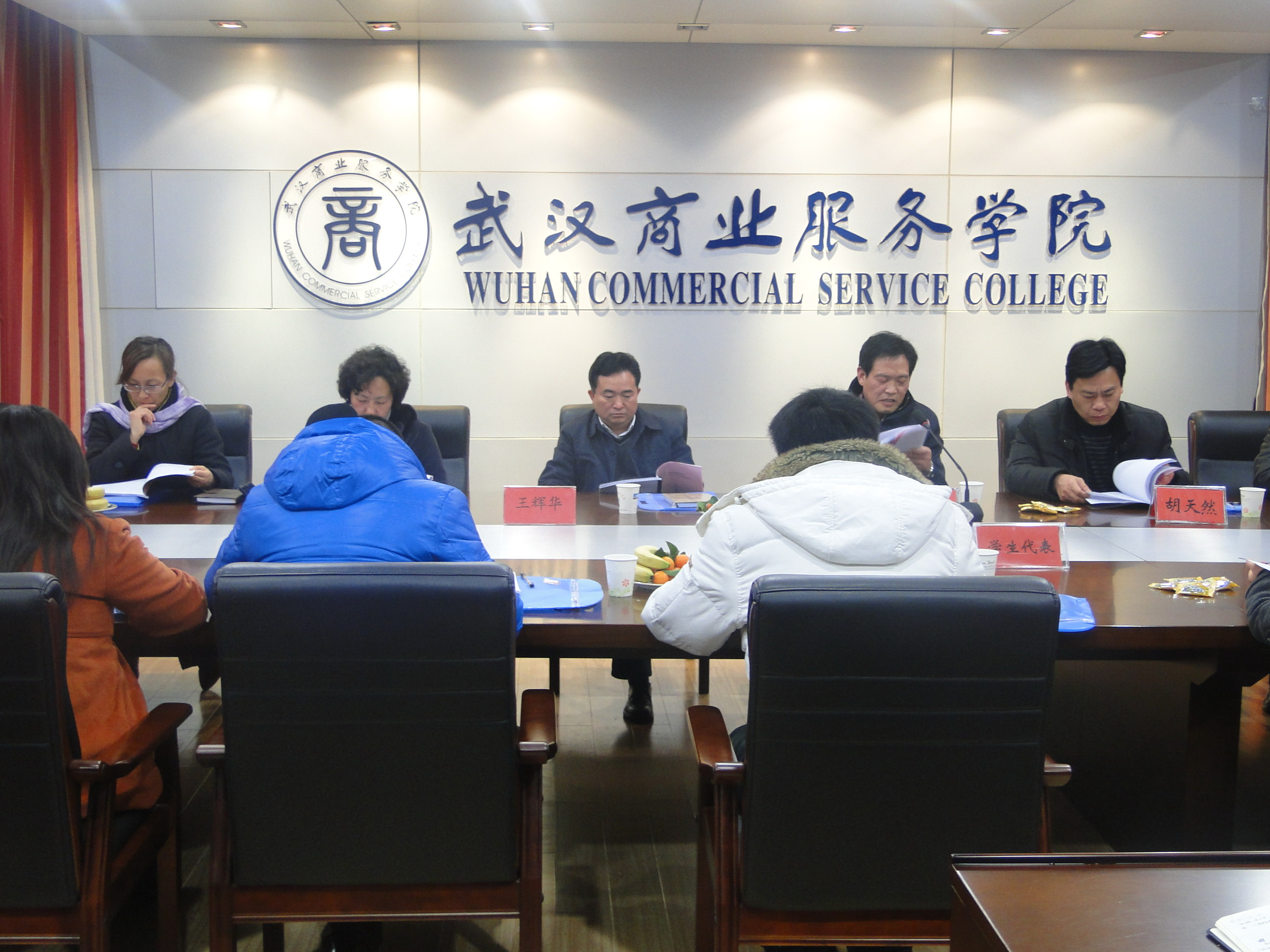 暖融融的热气从茶杯缓缓溢出,金色的桔子配上黄涔涔的香蕉,欢声笑语充满了空气,浓浓的节日气氛荡漾在公司行政楼508室,2010年12月29日下午2时,武汉商业服务公司党委副书记、纪委书记徐俊才,副经理王辉华、学工处副处长李如岚、商贸公司经理胡天然、书记夏欢、副书记副经理吴方鹏、副经理李红安、副经理熊文杰、商贸公司员工科全体老师、各教研室老师代表,以及各年级员工代表齐聚一堂,在这里召开武汉商业服务公司商贸公司2009—2010学年度员工工作总结暨表彰会。员工科郭莹老师主持会议。