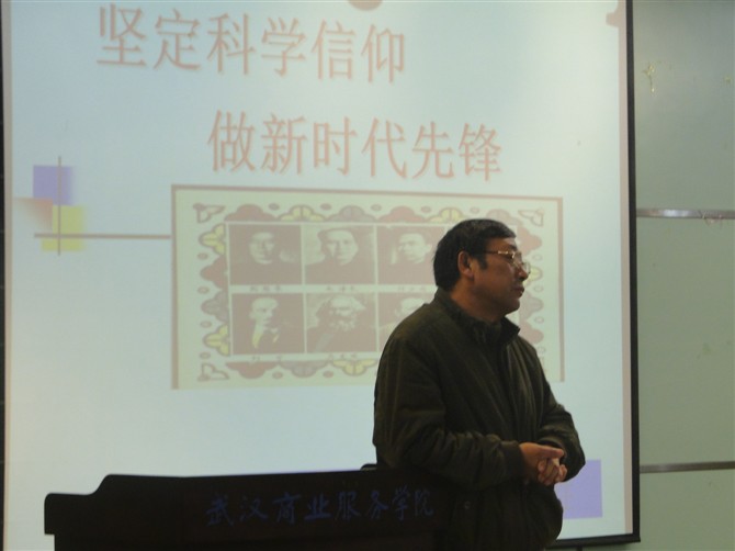 12月20日,思想政治理论课部主任胡国胜老师针对问卷所反映的问题在多功能厅308对各院系团总支副书记、特研会会长、全校各班团支书以及员工代表举行了一次以“坚定马克思主义信仰,争做新时代先锋”为主题的讲座。胡主任就自身的大学经历并结合社会实际分析了理想的特征以及对每个人的重要性,揭露了当代社会出现信仰危机的本质,深入的讲解了社会主义和资本主义的根本区别,让我们了解到了目前资本主义的病态发展。还向我们阐述了马克思主义的先进性和优越性,并鼓励我们坚定信念不动摇。