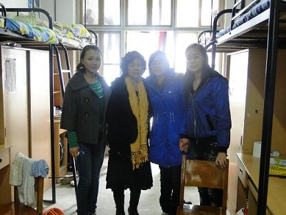 员工与老师在寝室合影
