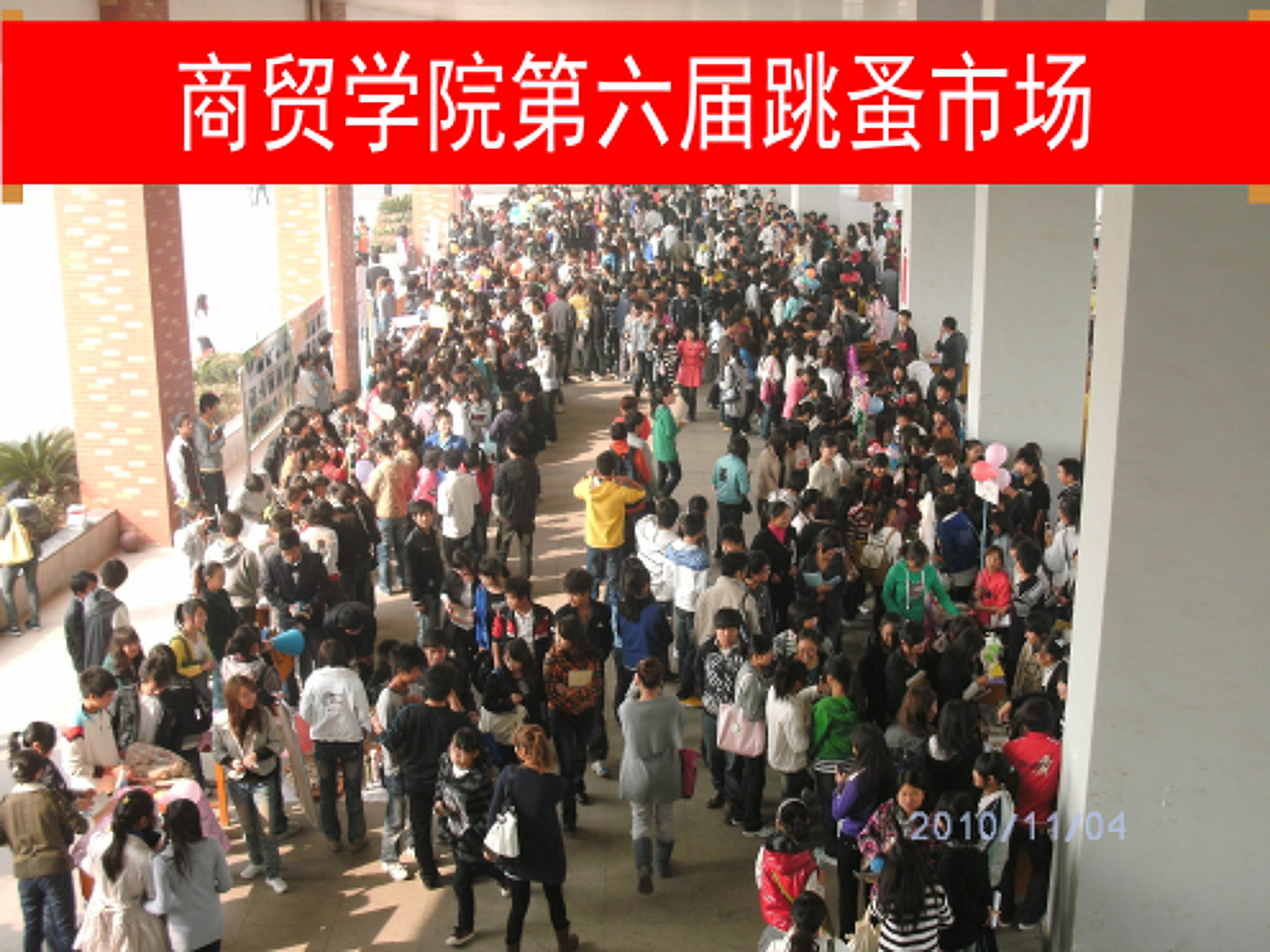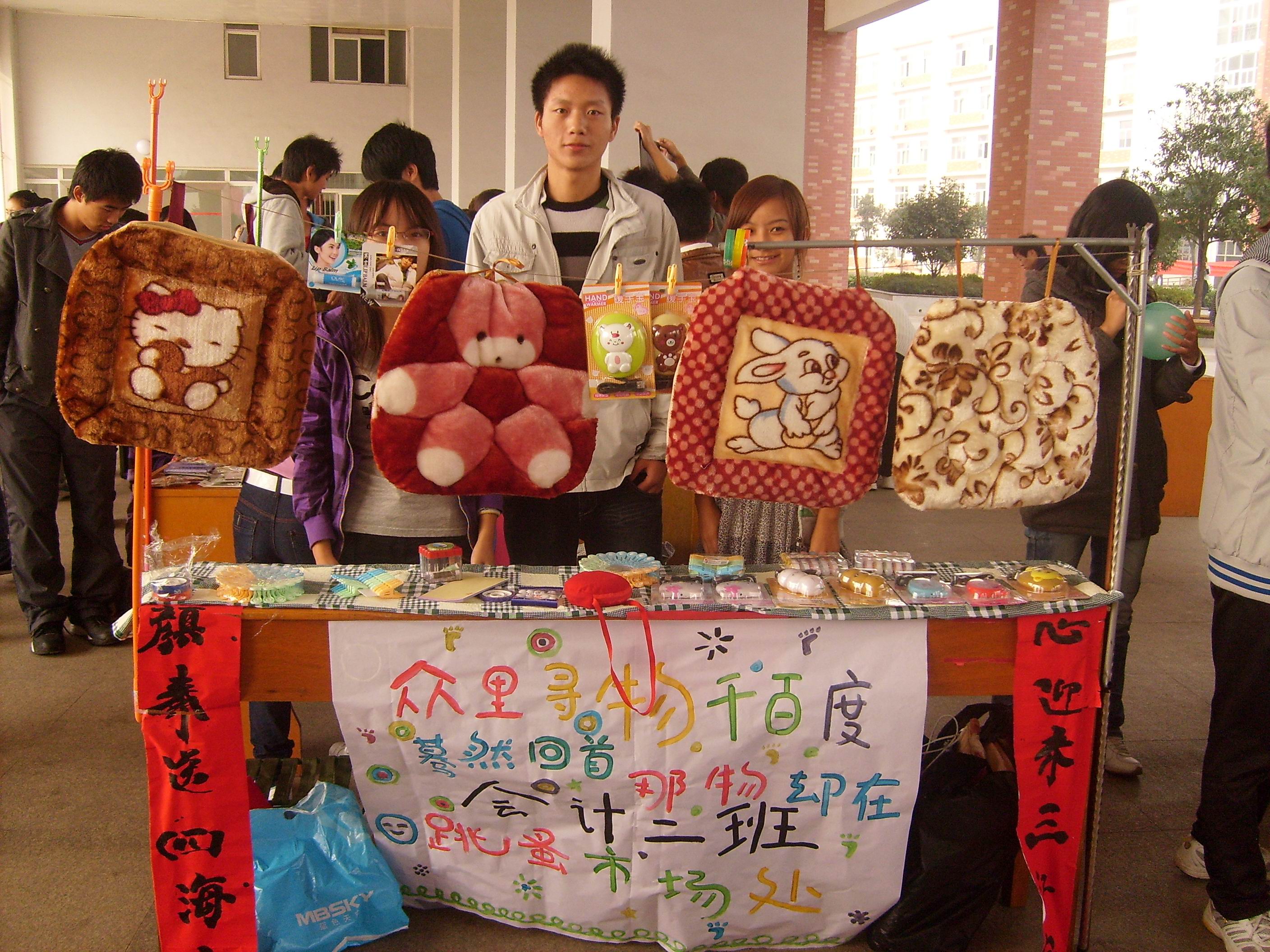 同学们将自己的商品摆在精心设计的摊位上,耐心地向前来“赶集”的同学介绍自己的商品。为了吸引顾客,各个摊位都拿出了自己的“看家本事”,真可谓是“八仙过海,各显神通”。跳蚤市场上,每个摊位都是精心设计,五颜六色的广告牌光鲜夺目,同学们的叫卖声一浪高过一浪。前来购物的同学们也是兴致勃勃,满载而归。和以往的跳蚤市场不同的是,今年的跳蚤市场凡购物满30元的同学就可以参加现场抽奖活动,中奖者可获得小礼品一份,这也大大提高了同学们的购物热情。“好兴奋,这是我第一次推销商品,感觉像当了小老板一样!”人力资源一班的袁木兰高兴地说道。2010级国际贸易的一名同学说道,“很紧张,感觉提前步入了社会一样,总之,这次活动可以锻炼自己的经商能力!”