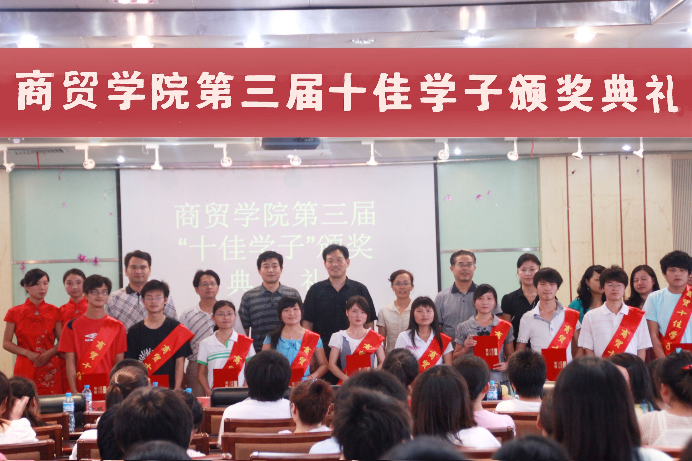 2010年6月17日下午2点,商贸公司“十佳学子”颁奖仪式在行政楼多功能厅308隆重举行,参加本次颁奖典礼的领导和嘉宾有公司领导徐俊才书记,学工处高福海副处长,商贸公司夏欢书记、吴方鹏副书记、李红安副经理、熊文杰副经理,员工科所有老师及各院系员工会主席。