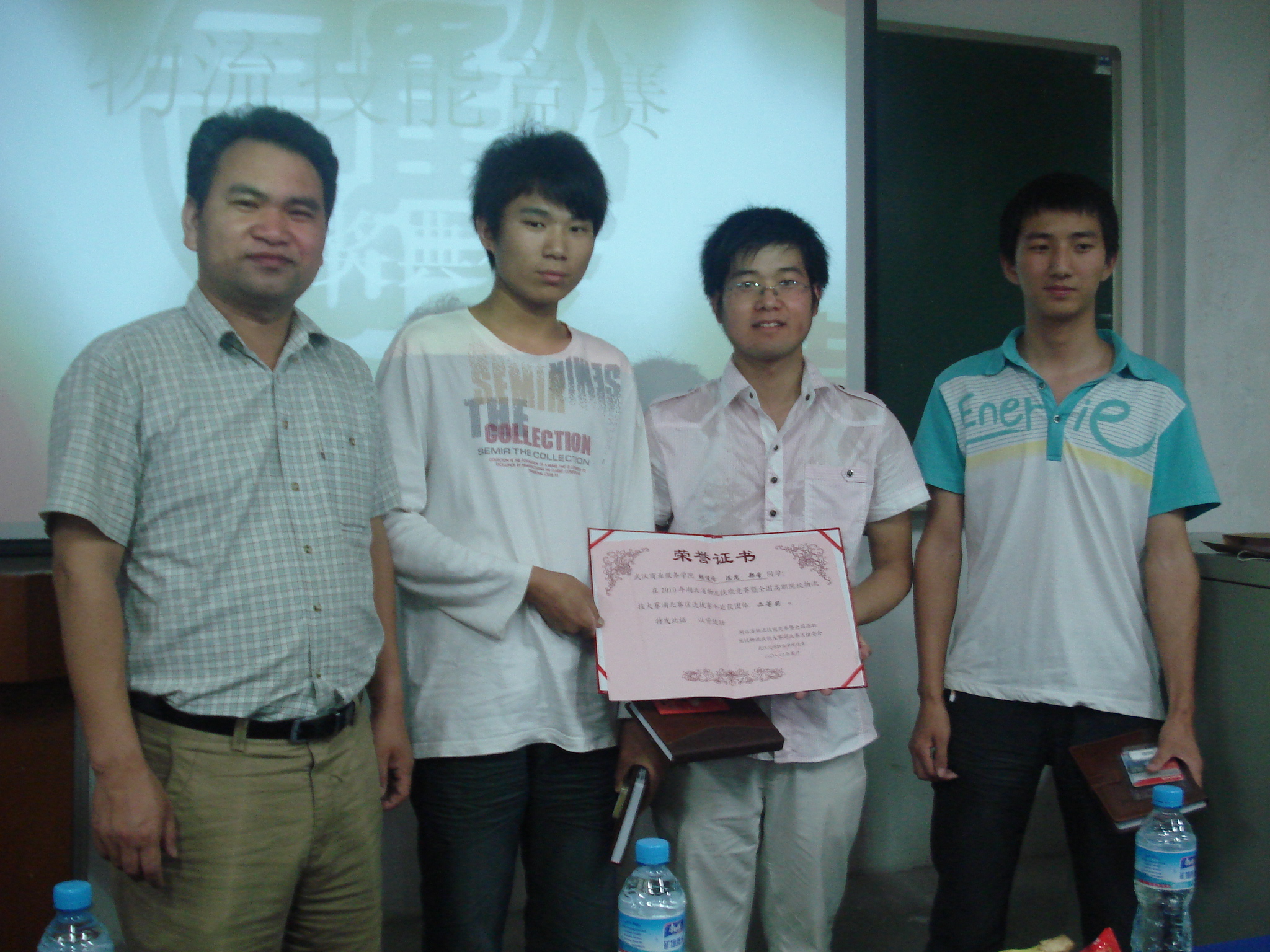 此次“全国物流技能竞赛选拔赛”在武汉交通职业技术公司举行,公司08级物流管理的三位参赛选手(胡峻峰、郑希、陈昆)荣获了“二等奖”。今天的颁奖典礼,三位获奖同学都到场,商贸公司副经理熊文杰老师、物流教研室主任易兵老师、市场营销张教授也参加了此次的活动。