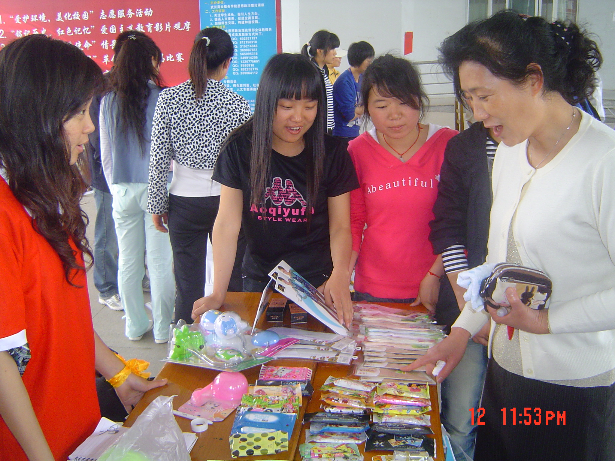 现在,商贸公司的同学都学到许多关于经商的专业知识,这次的跳蚤市场,她们很好把这些专业知识融入到摆地摊当中,这使得今年的跳蚤市场和去年相比更有特色,更能看出同学们的经营之道,经商之道————更好的宣传和营销。首先是摊位都进行了分区,有二手区,百货区,还有个人区,这样的划分让同学们可以更方便的找到自己需要的东西。不仅如此,同时每个班还都把自己班的摊位装饰了一番。“索马里海盗号店”、 “爱我所选,只选对的,不要贵的”、 “鼓”注一“值”、蚊帐店等富有新意的名字,通过这种方式来表现自己的班级特色。尤其是个人摊位卖鞋的摊位打出的“丑鞋,引领时尚潮流”更是雷到在场的同学们。不仅如此,09商管(3)班的两位同学拿着扩音器和竹席全场边走边大声地叫卖,“看一看,瞧一瞧,凉席热卖啊!”;09会计(3)班更搬来了音响,放着优美的音乐,来吸引同学们驻足选购东西;09电商(2)班的同学更是把电脑放在摊位上,让同学们来网上购物,从而来打造电子商务的品牌……跳蚤市场进行了一下午,商贸公司各专业的同学们各展其能,跳蚤市场办的红红火火。