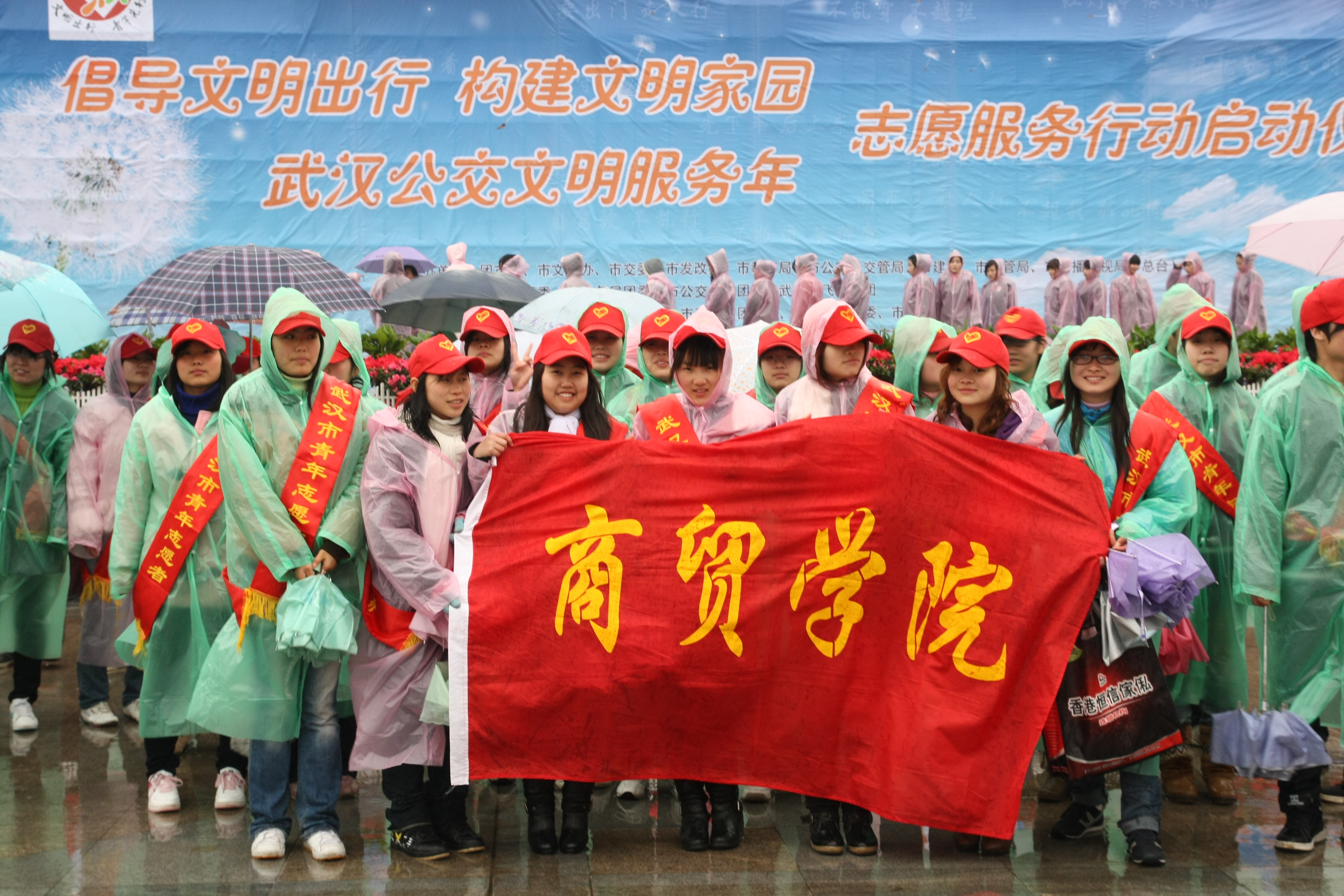 2010年3月5日雷锋活动日当天,商贸公司青年志愿者协会代表全校到汉口江滩参加“文明出行,青年先行”启动仪式。活动仪式上团市委书记宣读了《关于表彰武汉市青年示范志愿服务站的决定》,来自全市各志愿服务站线的20支青年示范志愿者服务站接受了表彰。武汉话剧团团长、市青联常委李铁等几位通知向市民发出“文明出行,青年先行”倡议