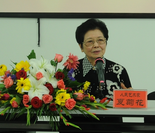“演员要把自己最好的一面送给观众,演好杂技就是我的使命和职责,我们的民族和国家太美了,没有人民和党就没有今天的夏菊花。”演讲中她不住的感叹道。全场的听众都为这现年73岁的艺术家的话语所震撼。“家家都有小,人人都要老,关心老和小,社会才会好”作为武汉关心下一代协会的副会长,夏菊花女士说,无论她走到上海、北京还是哪里讲座都要讲到的一句话,“年轻人是祖国的希望,民族的未来,我们只有关心好祖国的下一代茁壮成长,社会才会美好、事业才会富强。