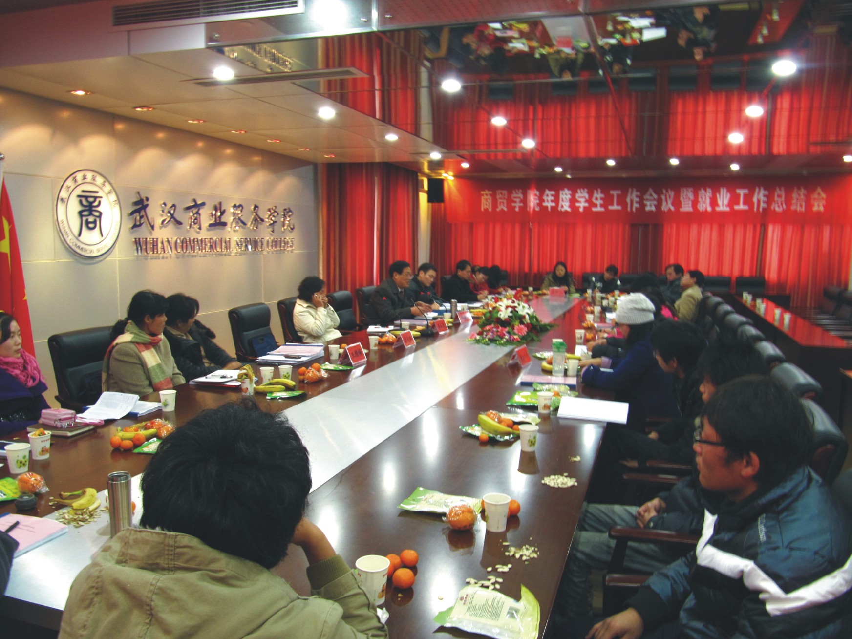 会议中员工科科长刘李军作了商贸公司2009年度员工管理工作总结,员工干事李奕作了2009年毕业生工作总结;教师代表杜坤老师和辅导员作了工作交流、员工会主席税元娥同学作了员工会工作报告。