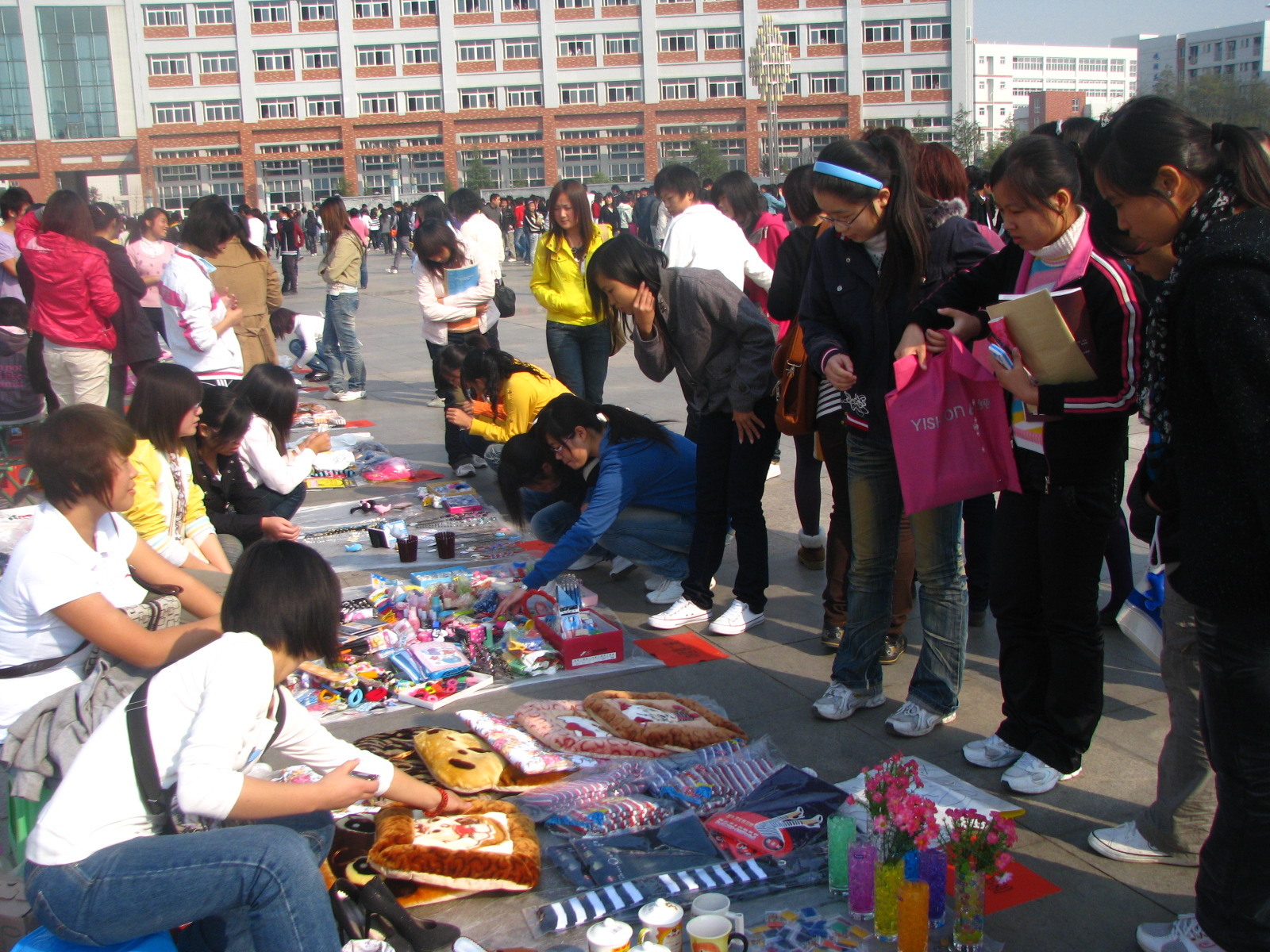 本次活动以“理论打基石、实践出真知”为指导思想,目的是为开拓同学们的视野,提高同学们的动手操作、社会交往等方面的能力。活动现场来回的人川流不息,叫卖声不断,各式各样的商品在并在摊位上井然有序的排放着,服饰、文具、玩具、副食等日常生活用品应有尽有,卖主精致的包装、漂亮的摊位布置及高声叫卖,吸引了大量的顾客。活动现场同学们的热情很高,光顾的师生络绎不绝,一拨又一拨的人群在各个摊位前频频驻足,寻找心仪的物品。这次活动的新颖之处主要表现在一下几点:第一,出现了零星水果店;第二,动感潮流的音乐不断的响在现场的每一个角落;第三,公司系各协会加入到阵营之中。
