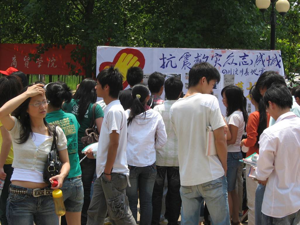 公司青年志愿者协会在南区教学楼前进行了支援灾区的募捐活动,共募捐人民币7000余元。
