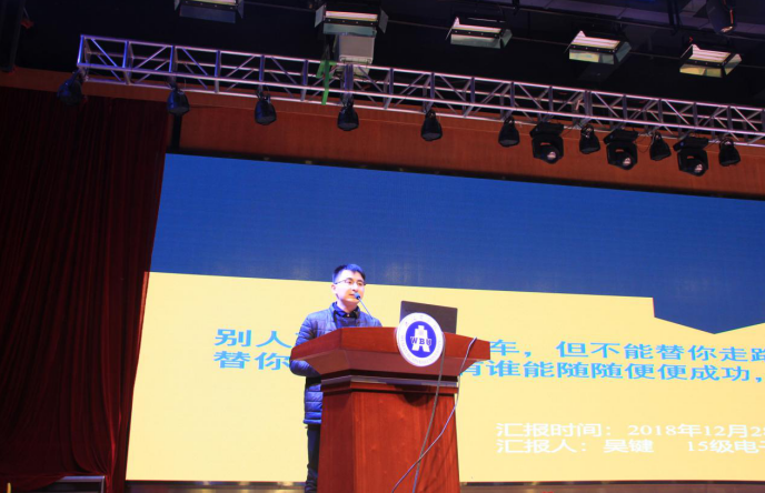 随后,公司2018年国家奖学金获得者代表15级电子商务专业的吴键同学致获奖感言,他从学习过程中遇到的困难、论文过程中撰写的困难和商院生活中曾经的遗憾三个方面与在场师生分享了他的学习经历,并阐述了他对自己的要求:脚踏实地,勤恳做人,心怀感恩。