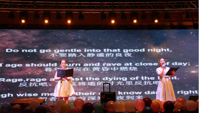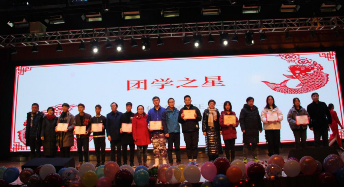 随后,杨茜老师与付园老师献上了精彩英语诗歌朗诵。并以陈伟、董鑫玉、洛松卓玛等同学民族舞蹈《欢聚一堂》作为此次表彰大会的结束。