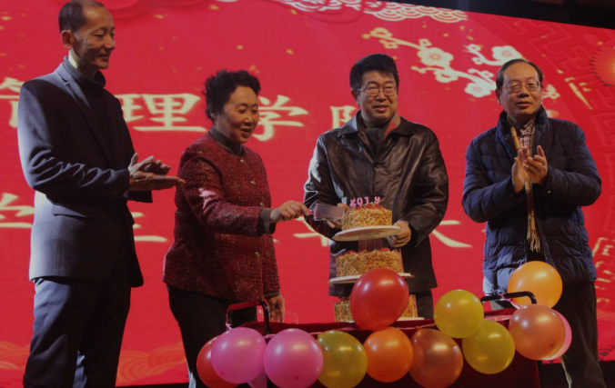 晚会的气氛逐渐浓烈,林俊老师、徐博老师和吴琪带来的乐器演奏《山丹丹花开红艳艳》将新年的红火燃烧至商院的每个角落。