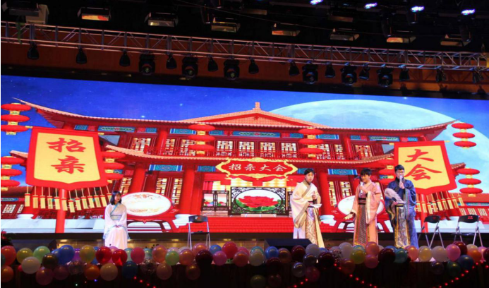 第四轮颁奖是王明丽老师、江婷老师、田婧老师、童曙老师,为在“文明创建”中获得示范美丽寝室称号的员工代表颁奖,鼓励同学们创建文明和谐的美好生活。在第四轮颁奖后,由王佳权、杨智黎、杨雪、王淑婷等带来了小品——《四大才子》,主要讲述了围绕文府小姐招亲而发生的一系列故事。
