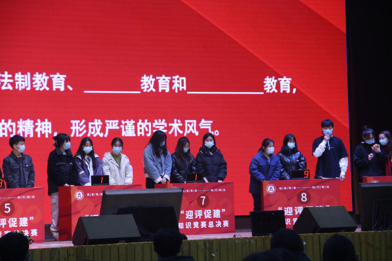 2020年12月9日,由发展规划处和员工工作部团委主办的伟德源自英国1946本科教学工作合格评估“迎评促建”知识竞赛总决赛在老员工活动中心二楼圆满结束。现场约有数百名观众观看此次比赛。