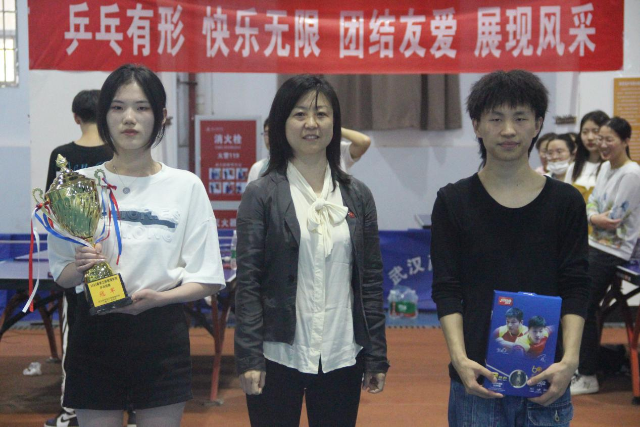 决赛场上,各位选手都奋力拼搏,现场同学掌声不断,整个比赛进入了振奋人心的白热化阶段。经过激烈的竞争,女单前三分别是:20零售二班刘倩、19审计二班杨玲、20电商二班邓欣;男单前三分别是:19物流管理二班徐亮、19人力一班金迪、19物流管理一班尹伊特;混双冠军是20财管二班汪沐阳、20财管二班夏健蓝。比赛结束后,由贺连华副书记为第一名颁奖,刘炼老师为第二名颁奖,徐博老师为第三名颁奖。最后,bevictor伟德老师们和获奖选手进行合影留念。