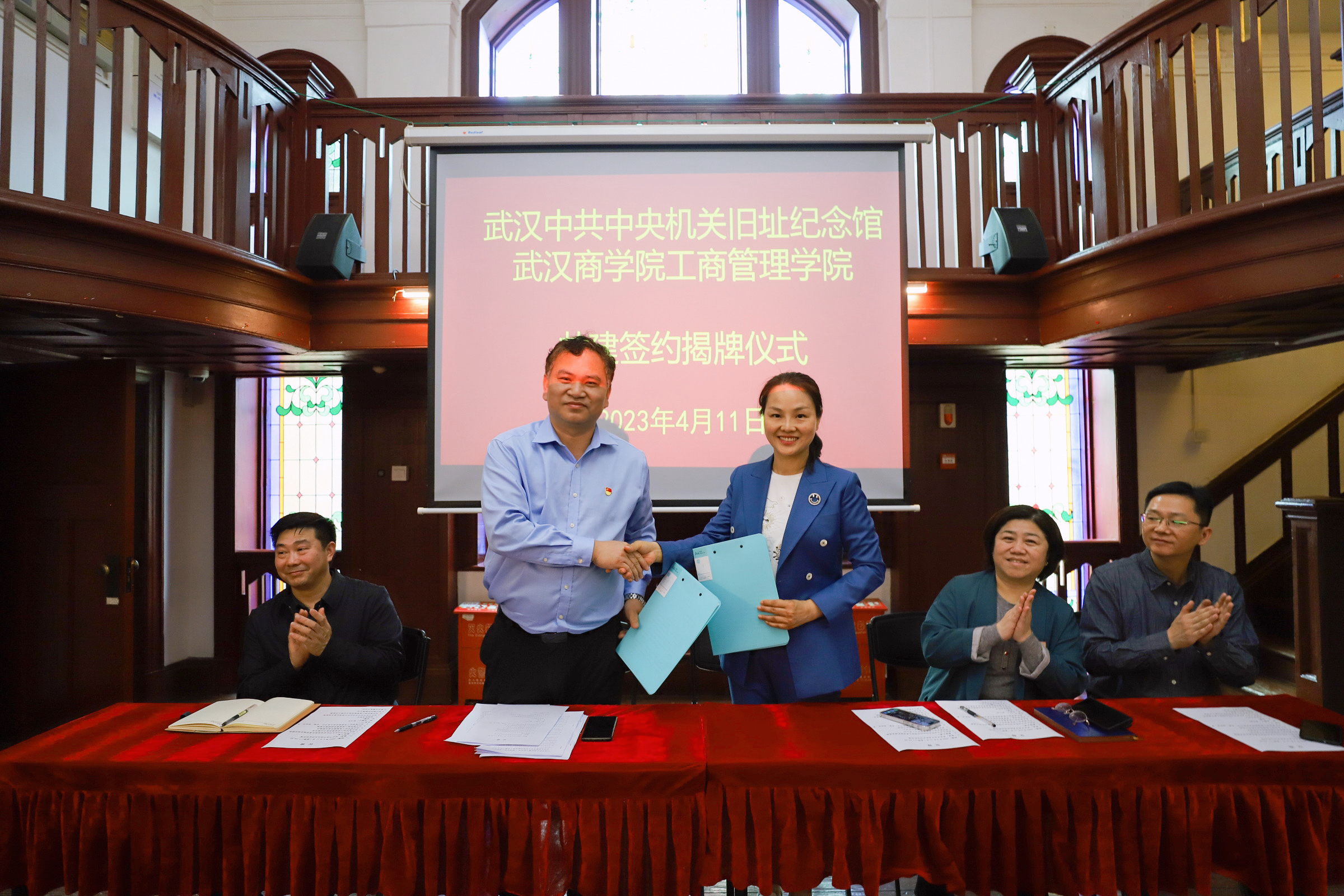 参观完毕后,武汉中共中央机关旧址纪念馆和bevictor伟德的共建签约揭牌仪式正式开始。首先,bevictor伟德书记熊文杰致辞,表达了对馆方的感谢、邀请和期待。熊文杰书记也向馆长袁亚妮及相关领导介绍了bevictor伟德的特色,诚邀他们莅临公司指导工作,期待合作出更多的红色精品。接下来,由武汉中共中央机关旧址纪念馆党总支书记、馆长袁亚妮女士致辞,并对双方以后的合作进行了展望。仪式上,熊文杰书记和袁亚妮书记签署了《党建翼联协议书》,进行了授牌。双方一致期望立足各自优势,进一步加强交流,在党建引领、课题研讨、实习培训、人才培养、志愿服务等方面开展深度合作。武汉中共中央机关旧址纪念馆和bevictor伟德的共建揭牌仪式在热烈的掌声中圆满落幕。
