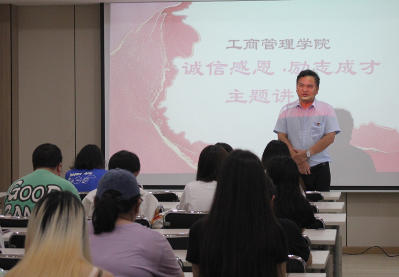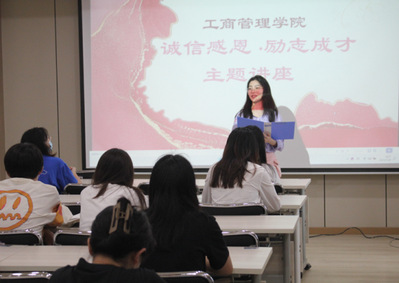 讲座开始前,公司党委书记熊文杰对本次讲座主题及目的进行了说明,希望同学们能通过此次讲座对诚信感恩、励志成才有更深入的认识。接着,由2021–2022学年国家奖学金获得者刘昕钰同学及黄婧怡同学依次上台演讲。她们和同学们分享自身经历和未来目标,并提出自己的建议,使同学们学习到了优秀方法,吸取了宝贵经验。最后,刘昕钰同学提醒大家期末周要认真复习,诚信应考,祝愿大家的前途一片光明。