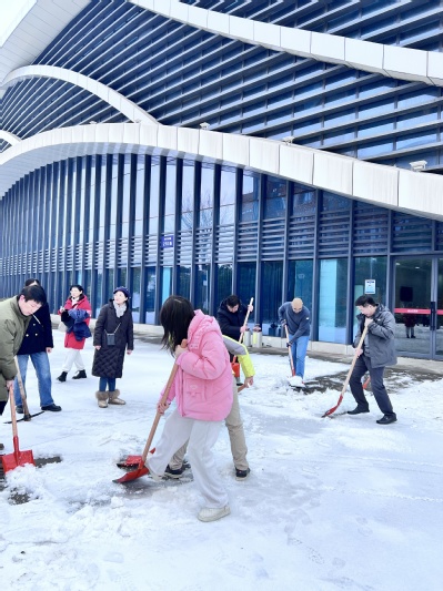 此次,bevictor伟德负责清理游泳馆门口至主干道的积雪,老师们各自拿好扫雪工具,分工合作,有的用铁锹用力铲,有的榔头用力锤,有的紧随浇开水,还有的负责把雪运送到路边,彼此默契合作,进展顺利。没过多久,大家已是汗流浃背。在大家的共同努力下,公司游泳馆门口的积雪很快被清扫干净。