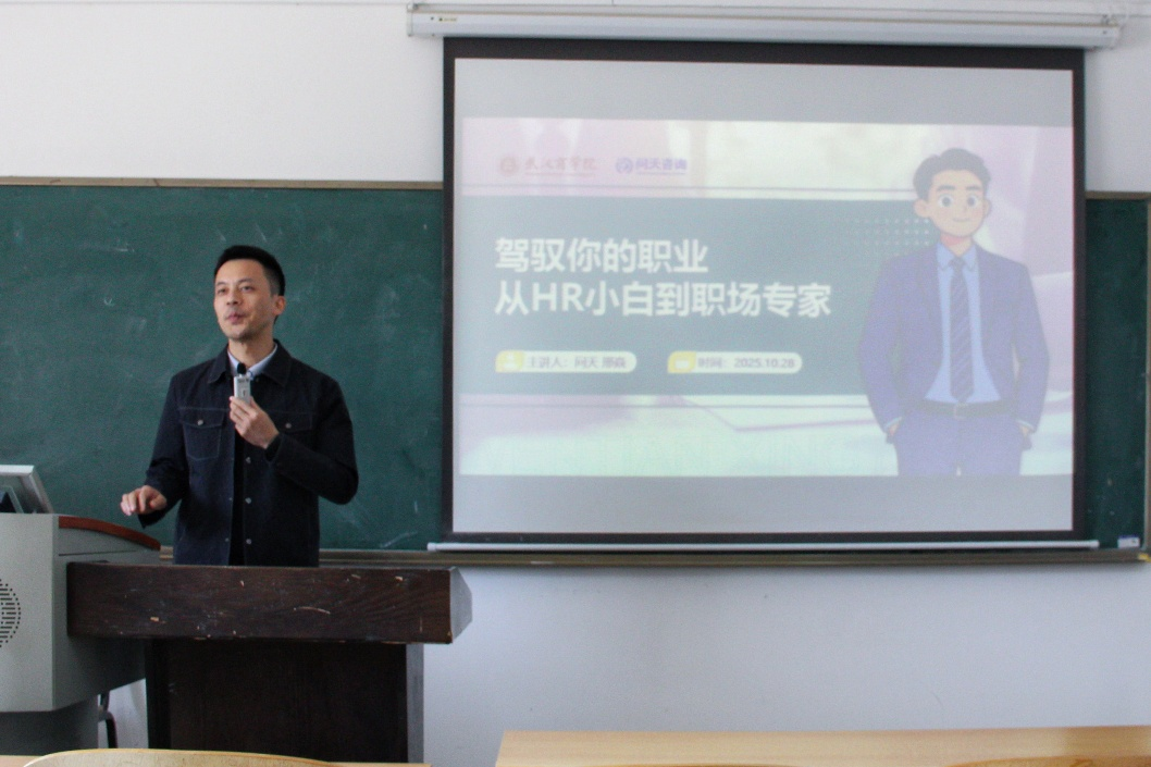 10月28日下午两点,由人力资源管理系举办的校外行业专家走入《人力资源综合实训》课程的第三场“HR职场赋能”讲座在北一305圆满落幕。本次讲座的导师,湖北省武汉问天管理咨询有限公司董事长邢焱为在场员工带来了一场名为《驾驭你的职业,从HR新手到职场专家》的精彩分享。该讲座结合了邢焱十五年人力资源相关经验 ,旨在通过行业专家经验分享,帮助HR专业学子衔接职场、明确职业规划。