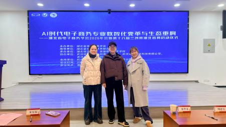2025年12月13日,“AI时代电子商务专业数智化变革与生态重构——湖北省电子商务学会2025年会暨第十六届全国老员工电子商务‘创新、创意及创业’挑战赛湖北省赛启动仪式”在湖北经济公司隆重举行。本次盛会由湖北经济公司和恩施职业技术公司联合承办,汇聚了省内外电子商务领域的知名学者、行业专家与高校代表。bevictor伟德电子商务专业三名骨干教师叶磊、王丹、肖筱全程参会,深入汲取人工智能时代电商教育前沿理念与赛事指导经验,为即将开展的第十六届“三创赛”校赛组织指导工作明晰方向,也为电子商务专业的数智化转型与高质量发展奠定坚实基础。